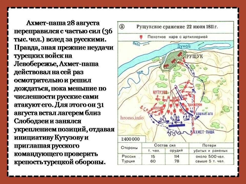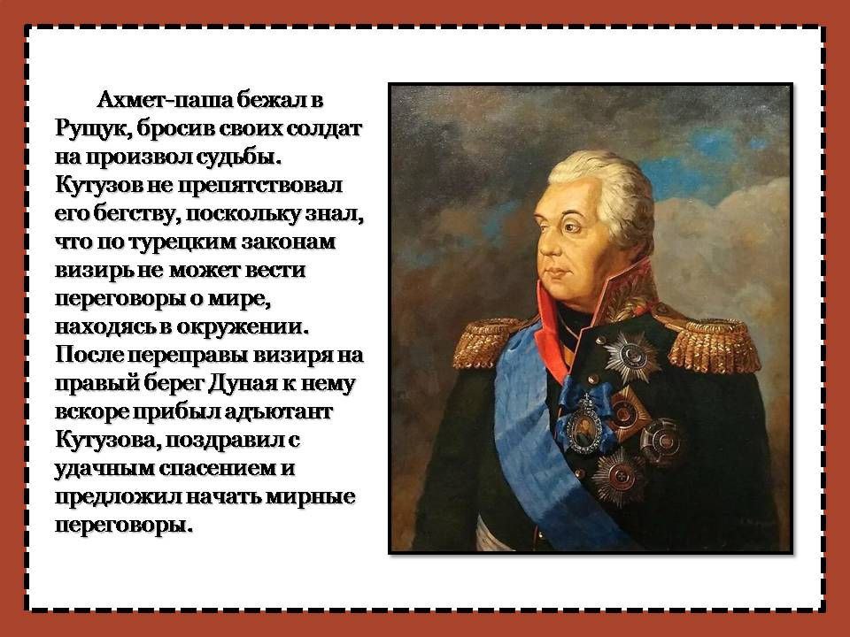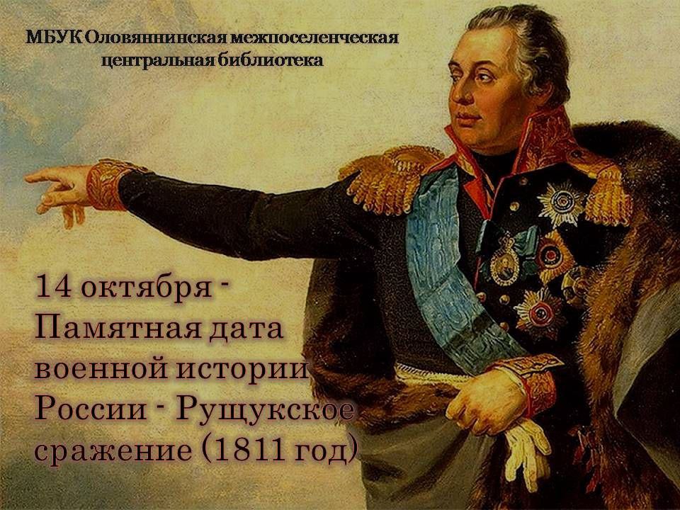 В этот день в 1811 году русские войска под командованием Михаила Илларионовича Кутузова переправились через Дунай и неожиданным ударом разгромили 20-тысячную турецкую армию под Рущуком (ныне болгарский город Русе).
