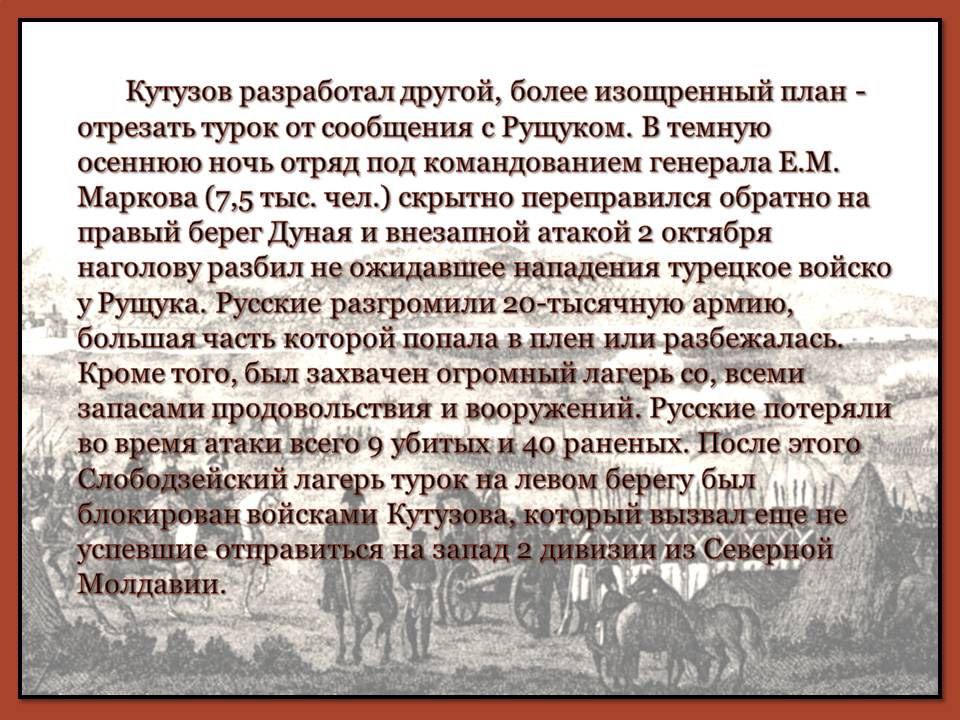 14 октября — памятная дата военной истории России, связанная со «Слободзейской операцией Кутузова».