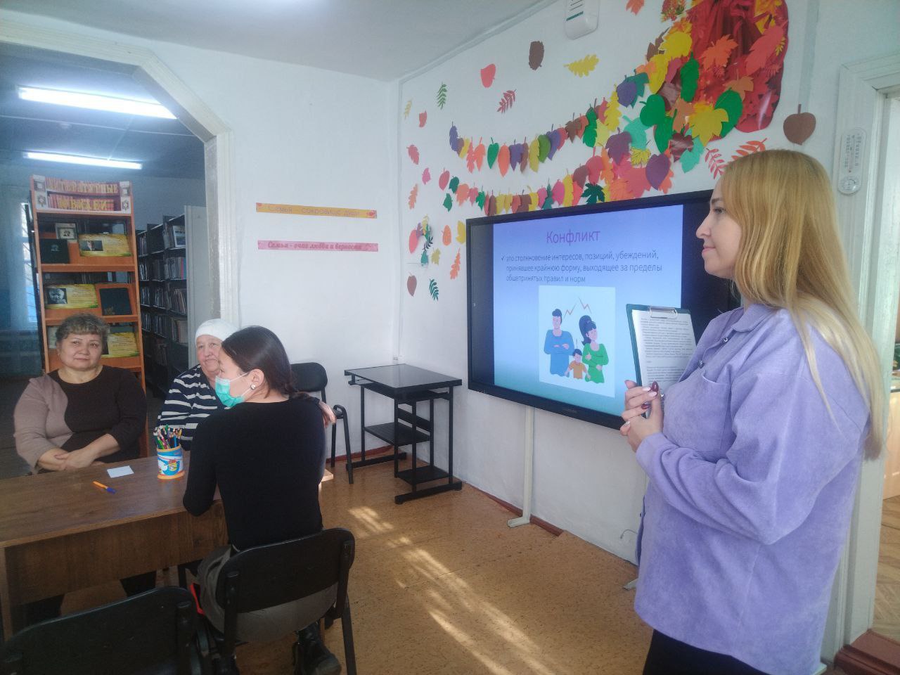 В рамках клуба «Семейный очаг» для родителей опекаемых детей, созданным при МБУК "Оловяннинская межпоселенческая центральная библиотека" совместно с отделом опеки и попечительства, 15 октября 2025 года состоялся семинар-практикум на тему «Конфликты в замещающей семье: от понимания к решению».