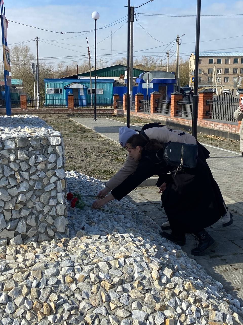 Первая часть патриотического часа началась на мемориале поселка Оловянная.