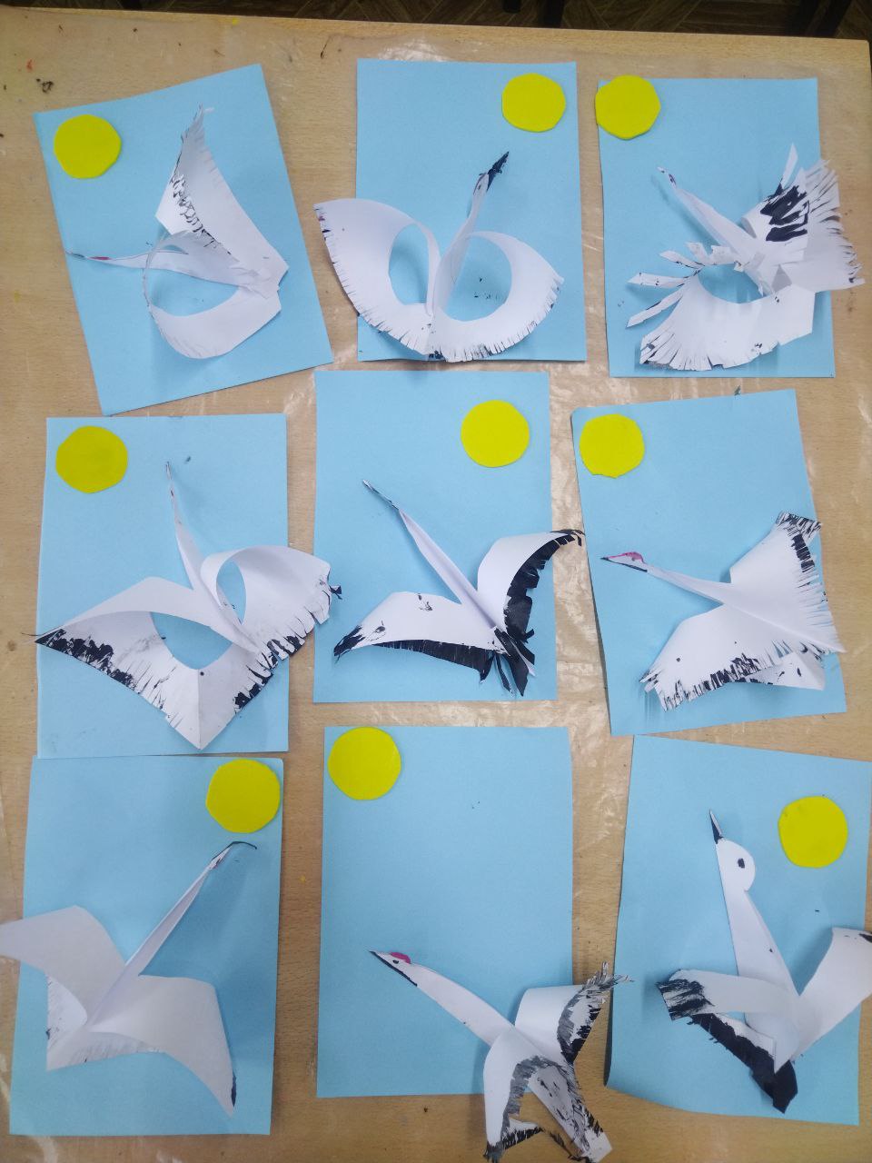 После этого мероприятие продолжилось мастер-классом по изготовлению бумажных журавликов. Ребята с большим удовольствием и уважением к празднику создавали свои журавлиные стаи, которые парили в голубом небе, устремляясь к солнцу.