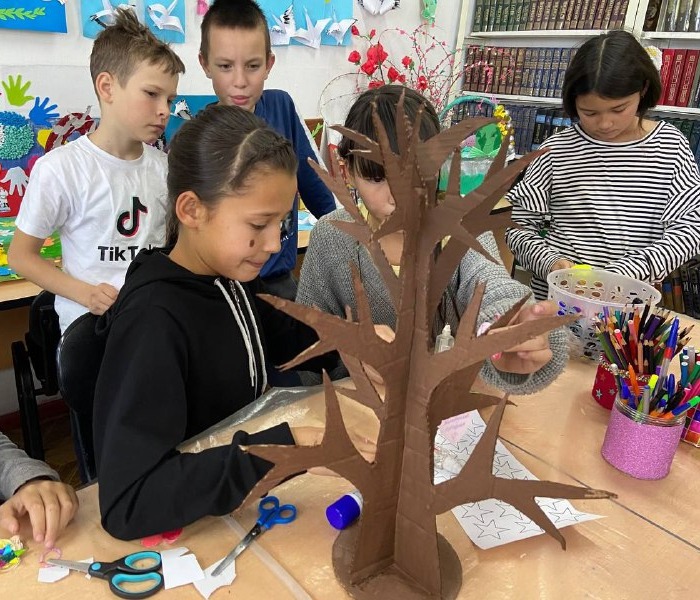 Детям напомнили историю праздника, а затем они приступили к созданию коллективной работы. Участникам предложили украсить «Дерево Дружбы» листиками, цветами и сердечками, на которых они написали свои искренние пожелания. Дети желали стране процветания, мира, хорошего настроения и многого другого. Они с удовольствием обсуждали, что для них значит дружба, и делились своими историями.