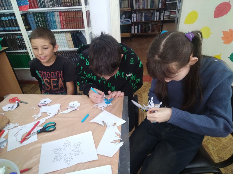 20 декабря 2025 года в студии «Лиловый кот» п. Оловянная прошел мастер-класс «Морозные узоры» по изготовлению новогодний елки из снежинок. Дети узнали об истории создания бумажной снежинки, прослушали популярные новогодние песенки о зимней вьюге и снежинках.