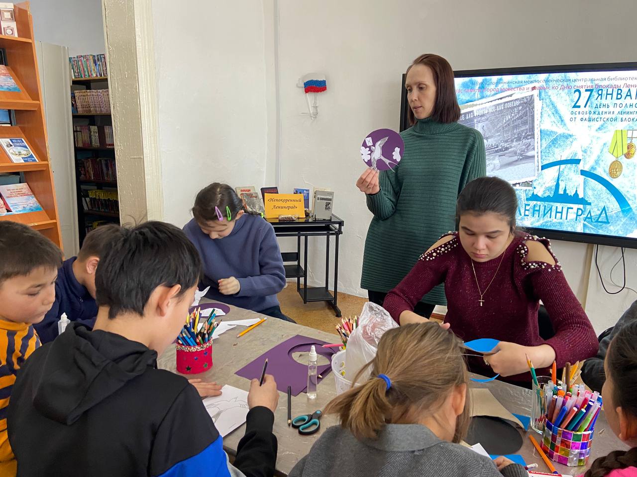 29 января 2026 года в Оловяннинской центральной библиотеке прошел час памяти "Город мужества и славы" и мастер- класс «Блокадная ласточка», приуроченные к Дню снятия блокады Ленинграда для детей студии изобразительно-прикладного творчества «Лиловый кот» поселка Оловянная.