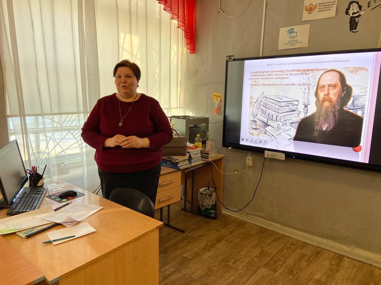 06 февраля 2026 года в МБОУ Оловяннинская СОШ №1 для 10 класса была проведена литературная гостиная «Писатель мудрых сказок», посвященная 200-летию со дня рождения русского писателя-сатирика Михаила Евграфовича Салтыкова-Щедрина.