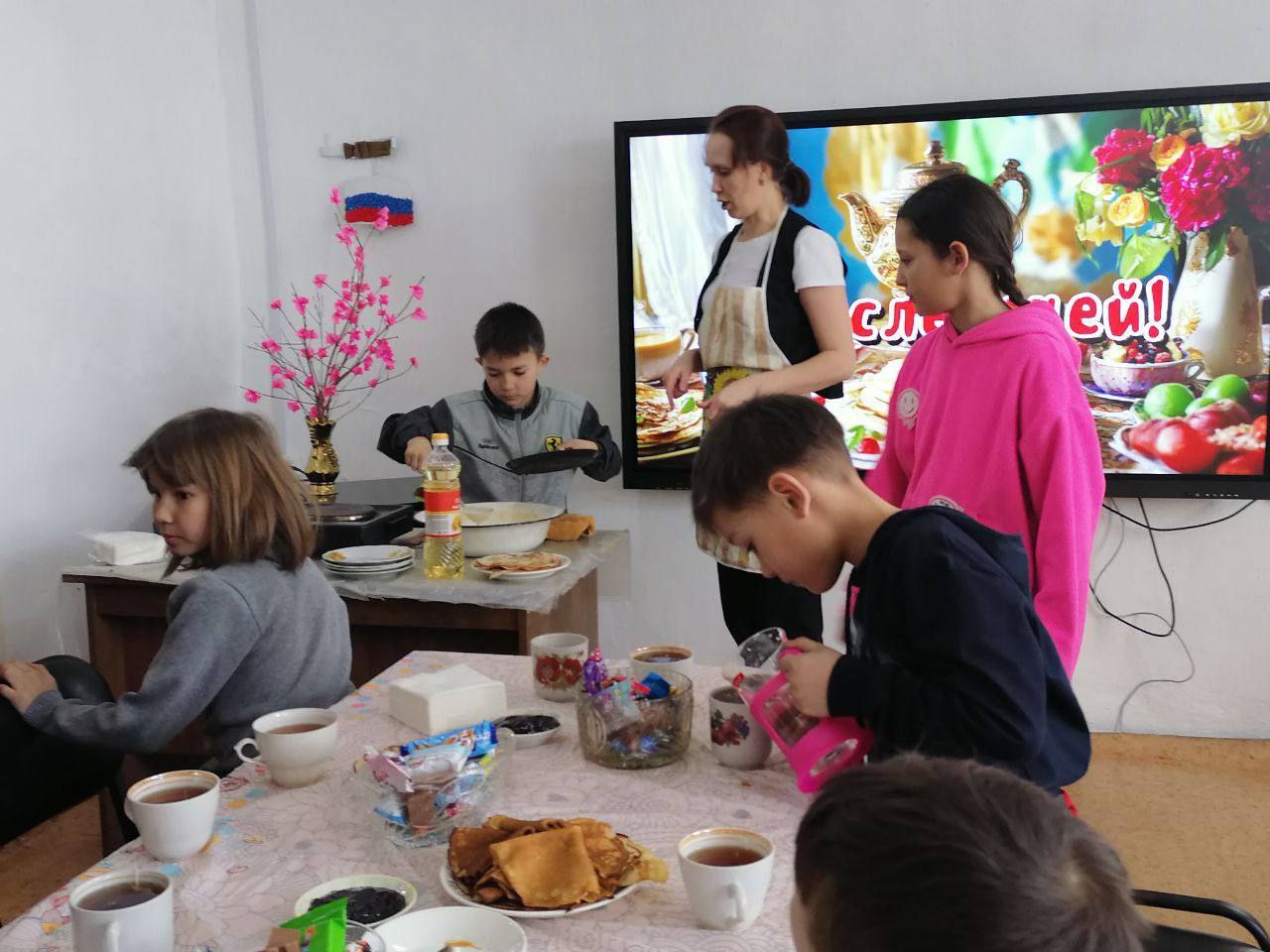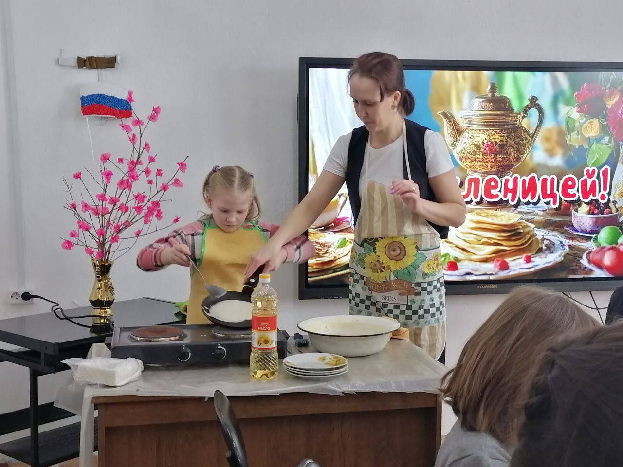 Сначала участникам рассказали о традициях Масленицы, перелистали «масленичный календарь» и вспомнили, как называется каждый день праздничной недели и что нужно делать. Затем ребята приступили к главному — приготовлению блинов. Во время готовки царила атмосфера дружбы и веселья: старшие помогали младшим, все вместе обсуждали рецепты и смеялись над забавными неудачами.