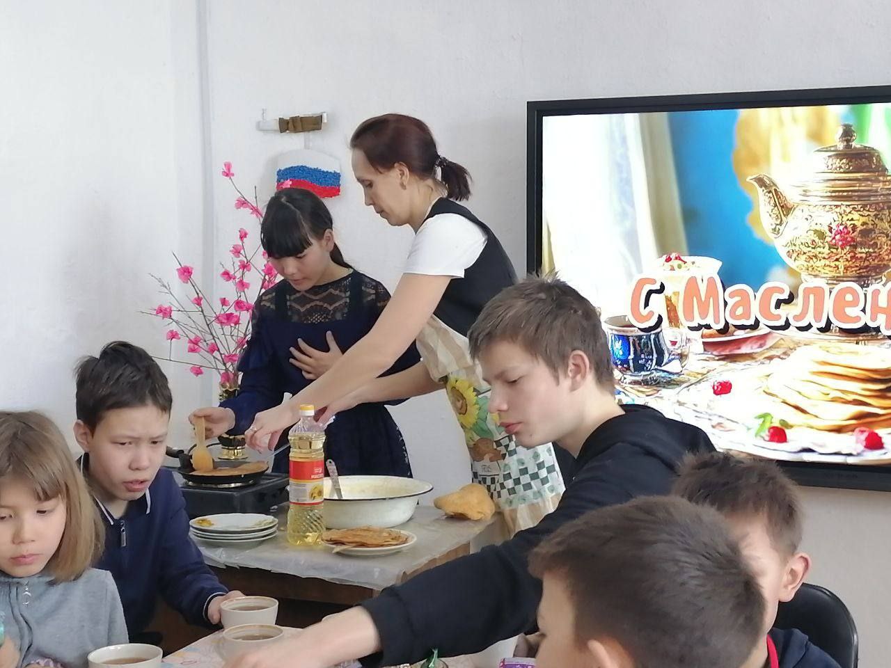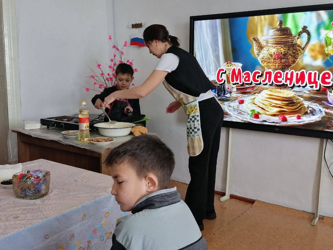 19 февраля 2026 года в центральной библиотеке посёлка Оловянная прошёл мастер-класс «Здравствуй, боярыня Масленица!» для юных участников студии изобразительного и прикладного творчества «Лиловый кот». Ребята учились печь блины.