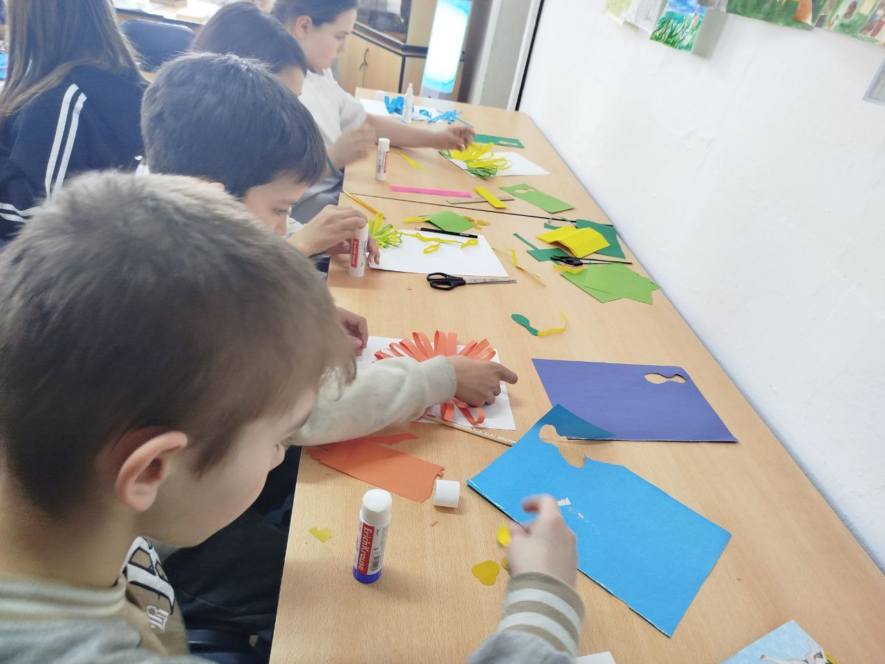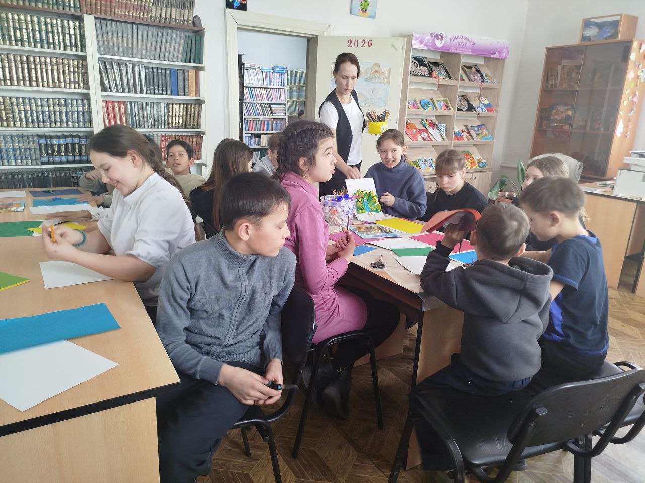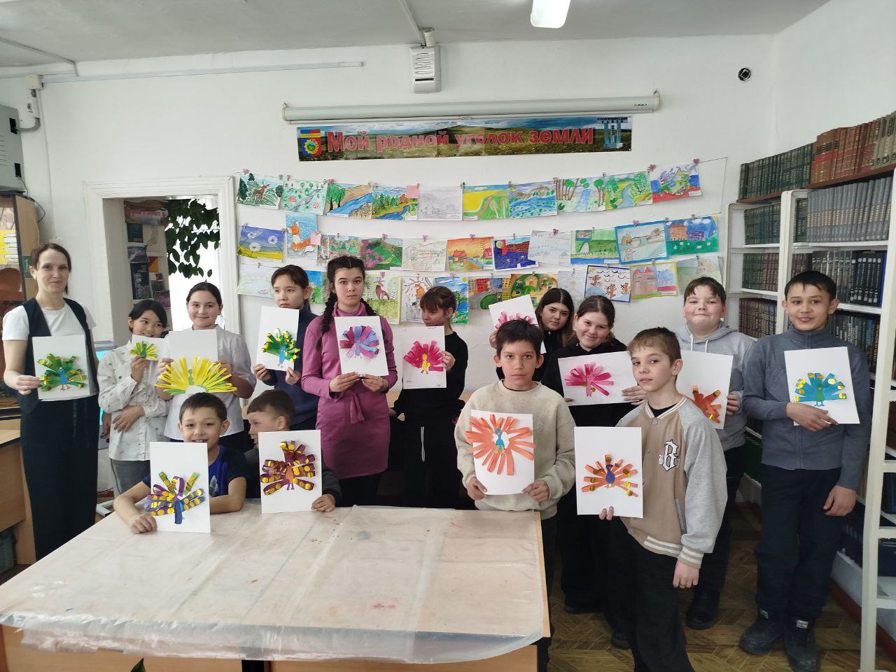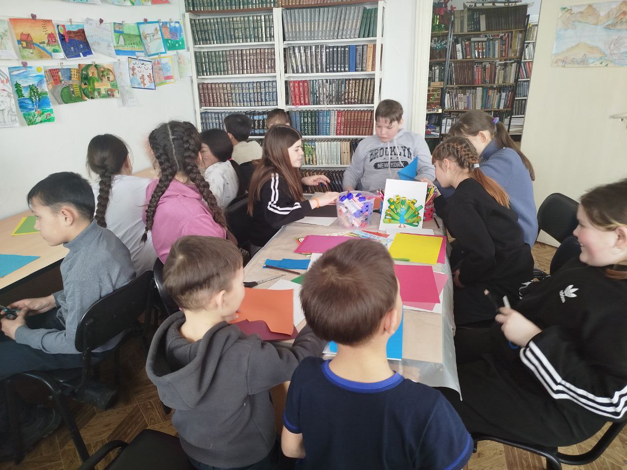В читальном зале царила дружеская атмосфера. Дети увлеченно создавали поделки, делились идеями и помогали друг другу. Библиотекари подробно объясняли каждый шаг работы, подсказывали, как сделать павлина еще красивее, и вдохновляли на новые творческие решения.
