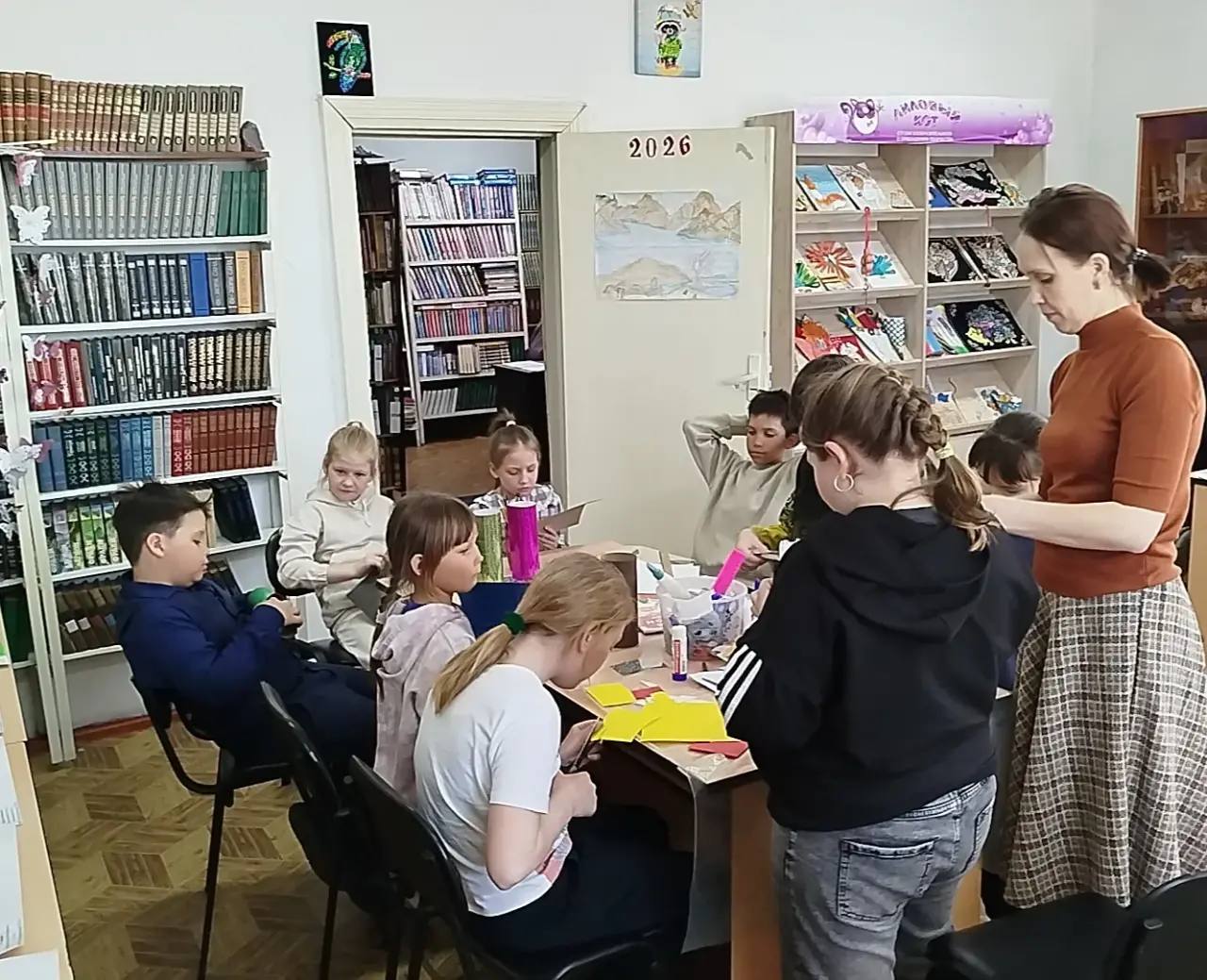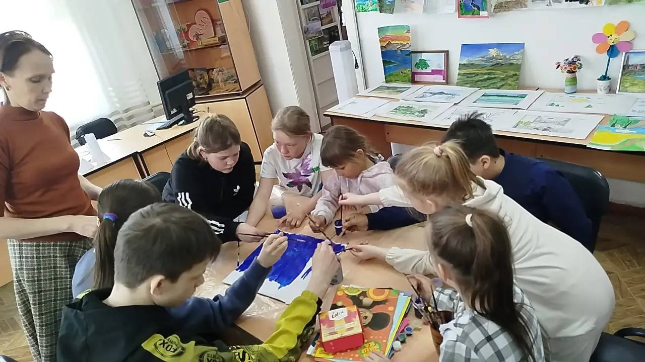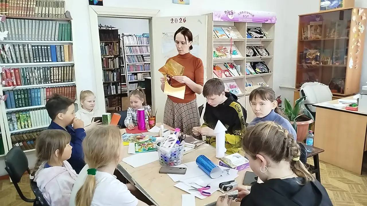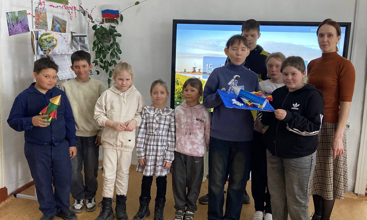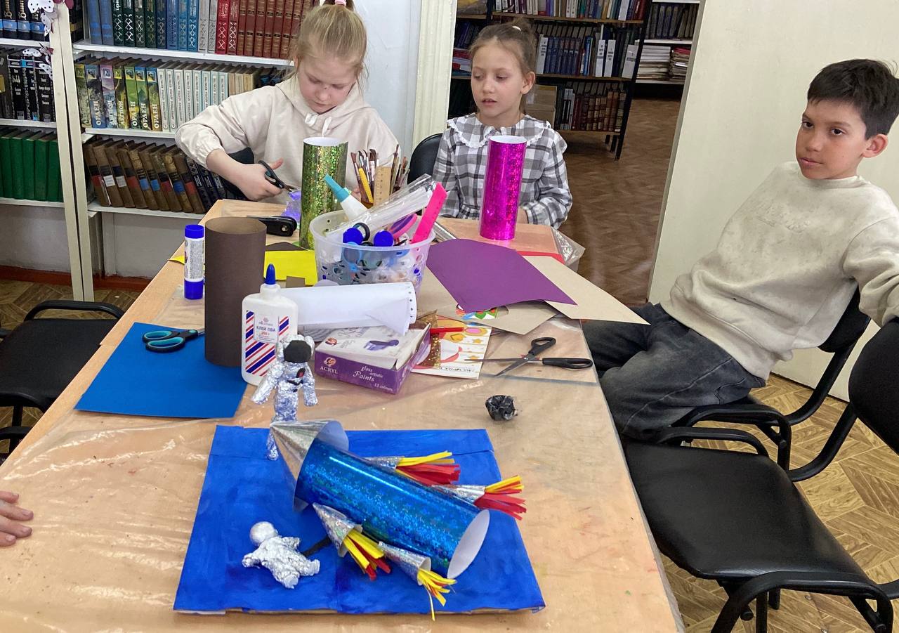 Ребята из студии изобразительного и прикладного творчества «Лиловый кот» создали коллективную работу на тему «Полный улет». Библиотекари подготовили познавательную часть: рассказали о первом полете человека в космос, устройстве ракет и космических кораблей, а также о жизни космонавтов на МКС. Дети слушали с увлечением, задавали вопросы и делились знаниями.